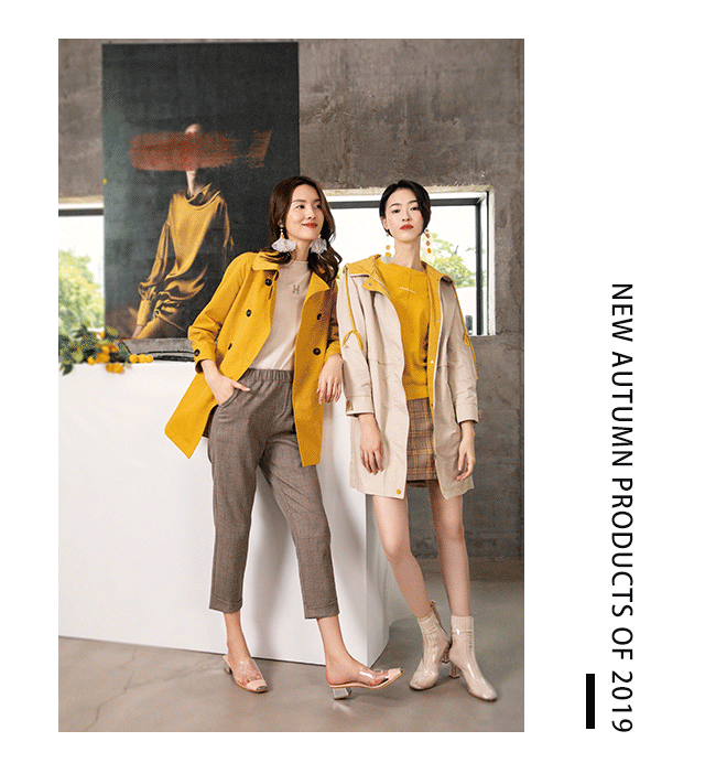 黄色风衣外套,一改往日的卡其色、军绿色,