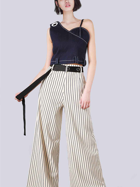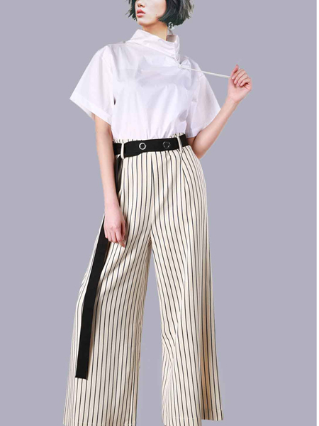 条纹出街,时尚感十足。搭配上白色的上衣短袖也很不错呢。半透明的感觉让穿搭更显性感,黑色的腰带搭配更是让你显出蚂蚁腰,阔腿裤的款式非常遮肉显瘦,你还不快来试一试?