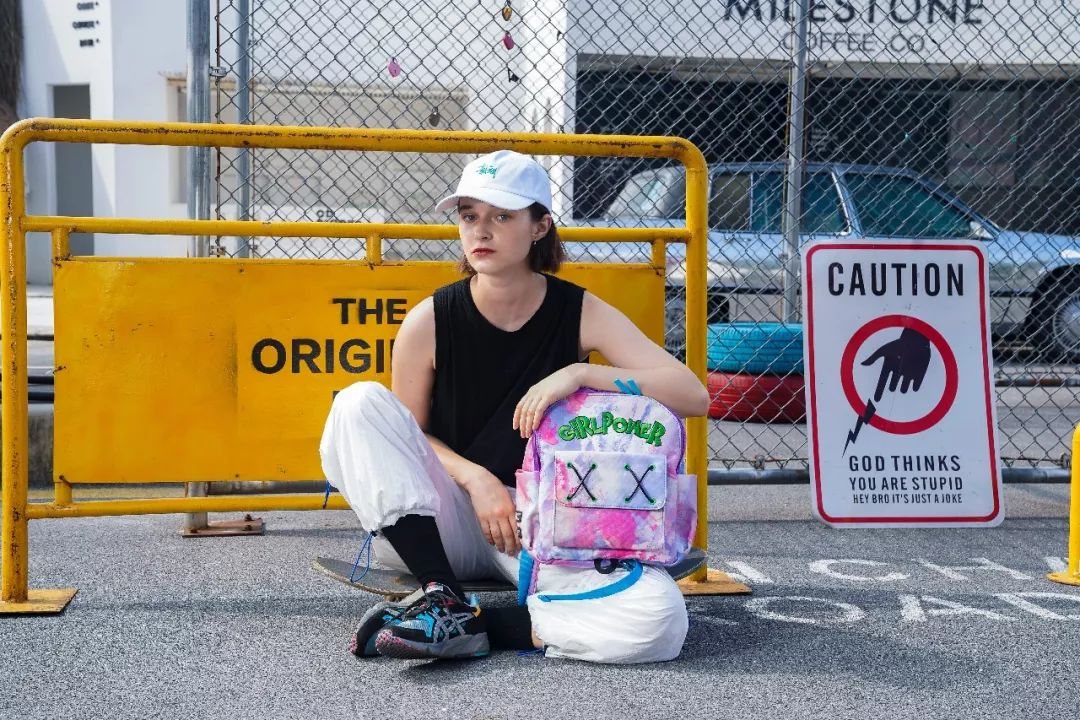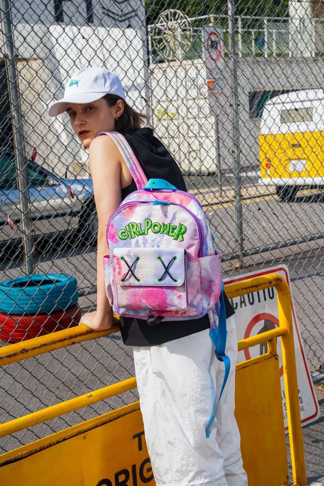 总之当这些色彩在面料上自由伸展蔓延而形态不一,无所定型,则一种无规矩的“图案”便应运而生。最后配合生动的刺绣文字作为一种自我表达方式,这款背包自然很特别。