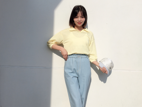 浅黄色的上衣,温柔十足,浪漫十足。搭配上蓝色的裤装,青春活力十足。木丝语擅于用简单的穿搭塑造出更具品味的穿搭时髦感,让快乐的心情与你同在,让舒适的穿搭与你同行。