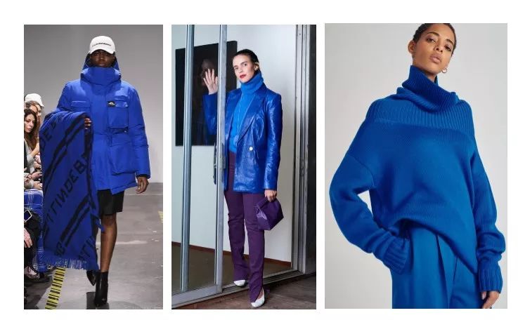 把皮毛一体的皮面和绒面进行色彩对比,会给人强烈的视觉冲击性。设计师大胆摒弃安全的同色系法则,将对比色拼接起,出人意料地给人一种活泼开朗的感觉,让服装焕发活力。