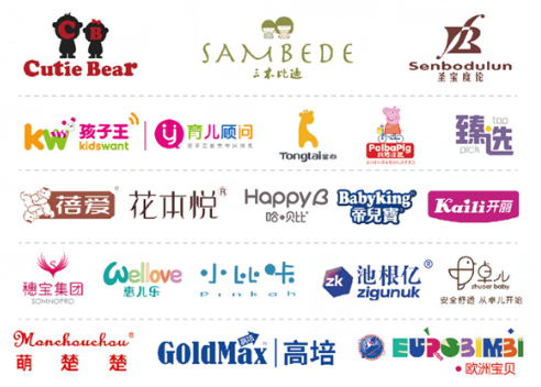 高培、完达山、童泰、孩子王、卡拉贝雄、圣宝度伦、每爱、每童、亦冠、池根亿、欧比瑞、欧洲宝贝、爷爷农场、贝婴可、安可新、洁奴、亲贝儿、开丽、小猪派芭等大量的知名品牌参展。