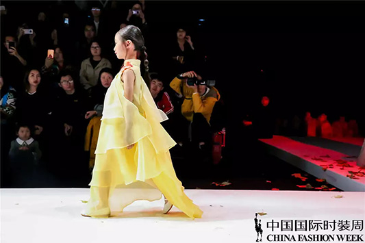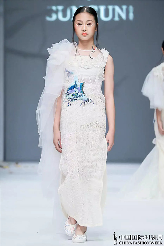 《山海》的设计中,设计师虽塑造了一个幻想中的世界,表现着年轻的对待时尚,对待传统的态度,大量的重工刺绣,恰到好处的留白,游刃有余,运用的大量的立体造型,融合法式刺绣,中式的刺绣,从各个方面表现着远古时代华夏的神秘与恢弘,同时也像世界诉说着大千世界里人类虽然渺小,可永不放弃的,永葆无畏的华夏精神。