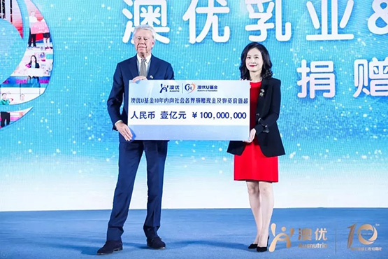 10月,在新中国成立70周年之际,澳优怀着对社会各界的感恩之情及对未来的憧憬与决心,在北京举行上市10周年庆典暨品牌战略合作发布会。澳优正式宣布澳优乳业与中国网球协会正式结成品牌战略合作伙伴,成为中国国家网球队官方合作伙伴。与此同时,澳优向澳优u基金注资1亿元,承诺未来十年以现金或物资的形式进行捐赠,反哺社会发展。
