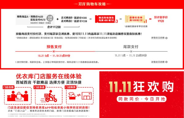 优衣库首次支持天猫双11购物津贴,每满400立减50