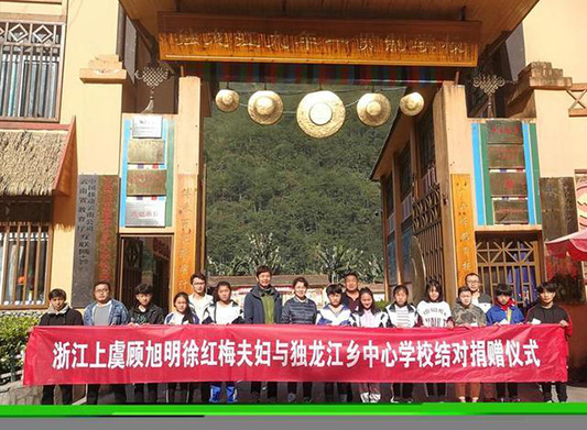 在途径云南独龙族怒族自治县时,顾旭明夫妇还与当地10位优秀学子结对助学,当场捐赠2万元助学金,并承诺以后将每年捐赠每位学子2000元,直到大学毕业。