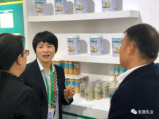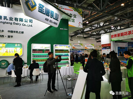 陕西圣唐乳业以本次展会为平台,选派强有力的团队,携旗下羊奶粉系列产品惊艳亮相,向五湖四海的中外参展商和客商展示来自中国奶山羊之乡、中国羊乳之都、代表富平地理标志产品的富平圣唐羊奶粉。熠熠生辉的圣唐乳业展台设计以羊奶本色白色为主色调,白绿相间,简约时尚,生机勃勃,生态环保,现代感十足。仿真奶山羊模型栩栩如生,圣唐乳业标志主题鲜明,羊文化元素和浓郁的奶香扑面而来。吸引众多客商和参展商驻足交流、洽谈,气氛热烈,人气火爆,井然有序。并对色泽纯正、颗粒细赋、口感爽滑、包裝新颖的圣唐羊奶粉和小零食产品赞不绝口,爱不释手。