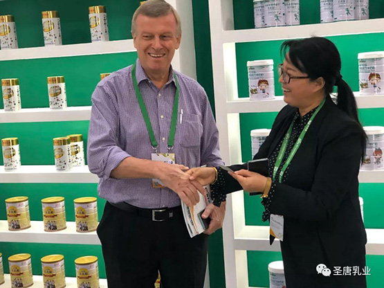 新西兰商会主席卫德云先生同工作人员亲切互动交流,称赞圣唐羊奶粉好味道,好营养。