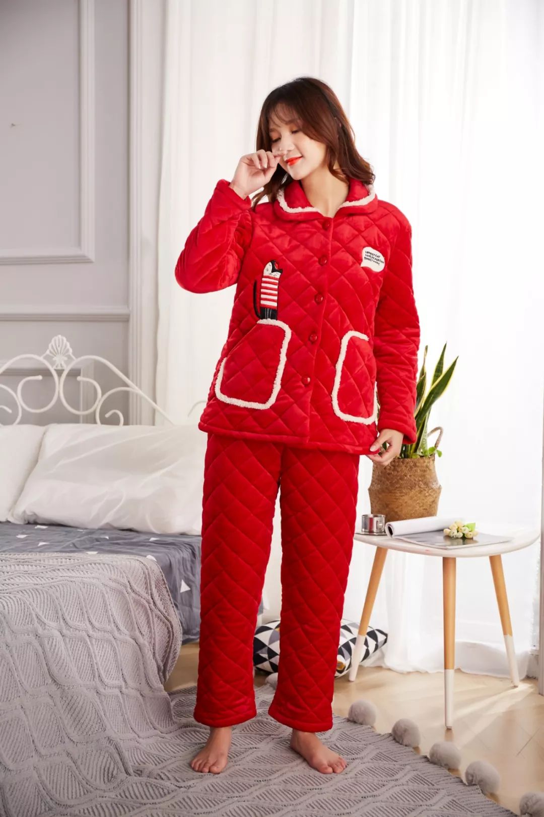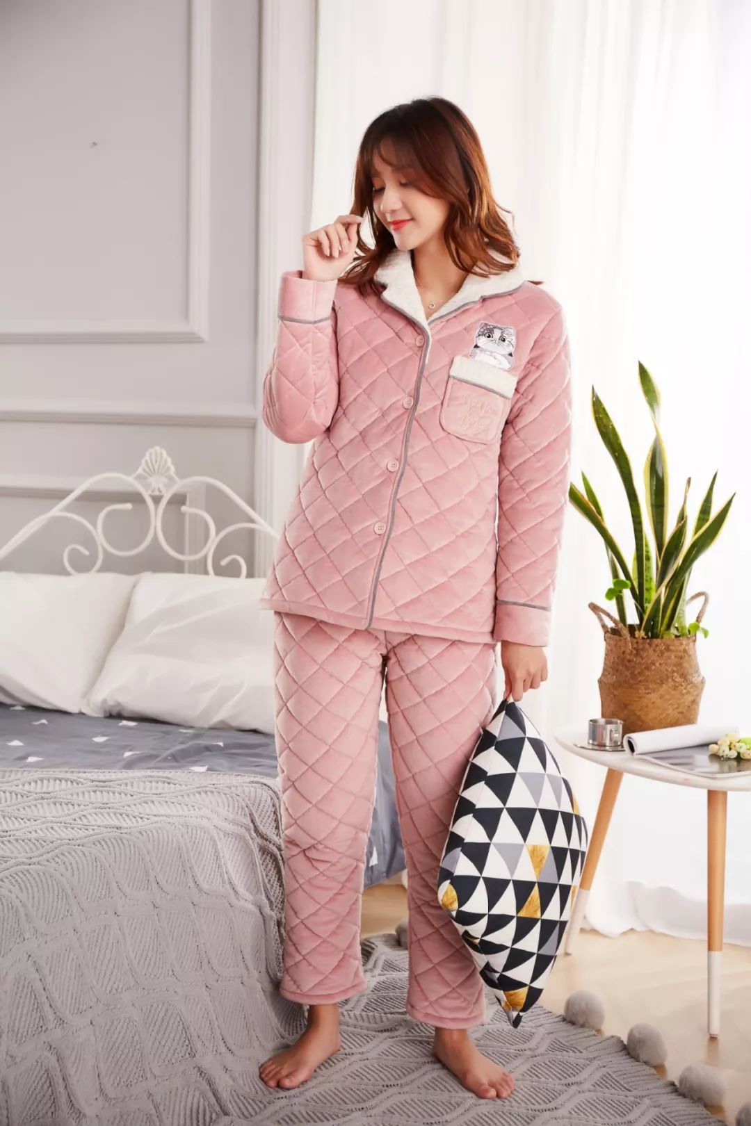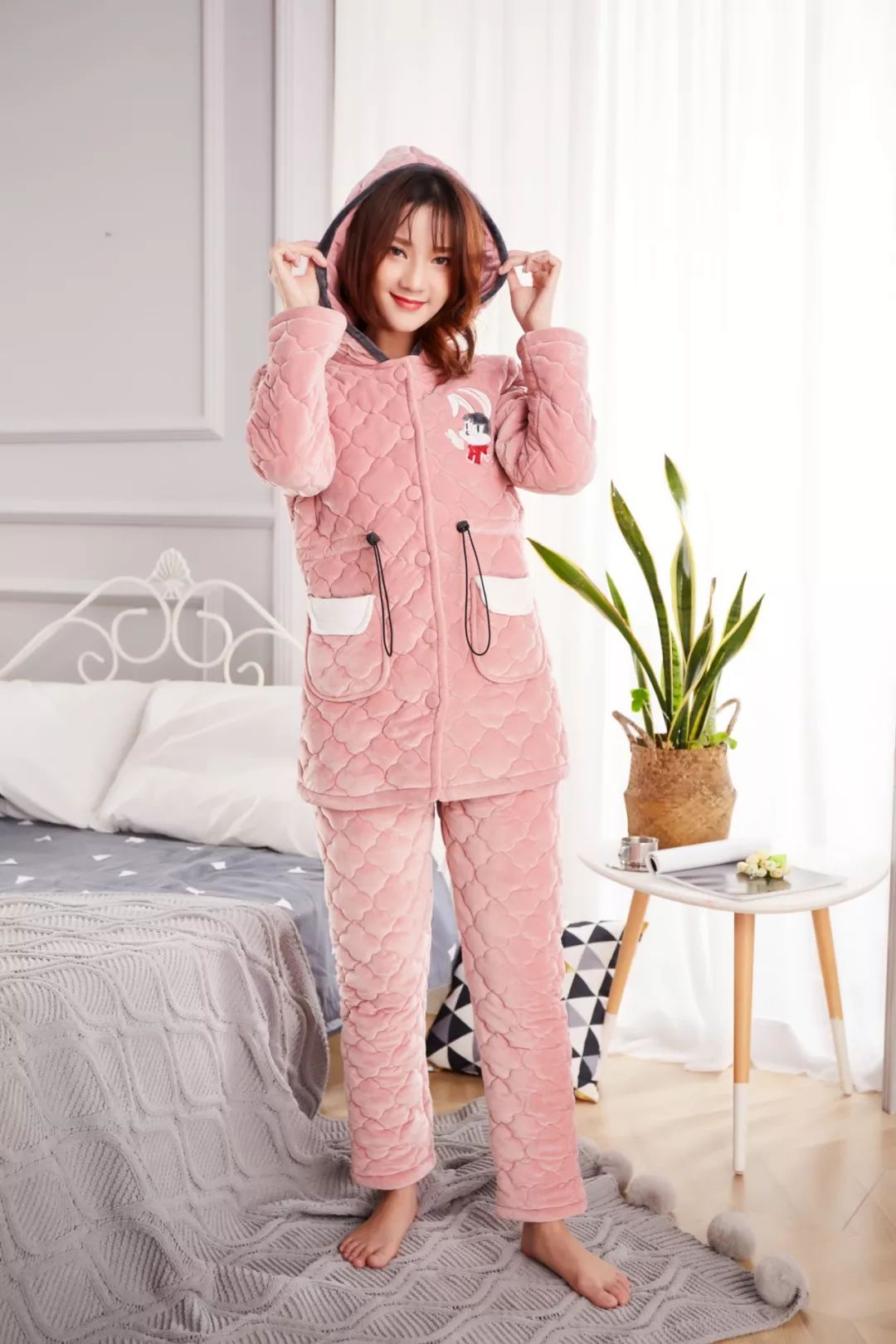 本季度将连帽设计融入夹棉睡衣中有了帽子的加入给我们带来全新的视觉感轻松减龄十岁不是梦!连帽款式,自带减龄活力感下至学生党,上至轻熟女都喜欢穿!