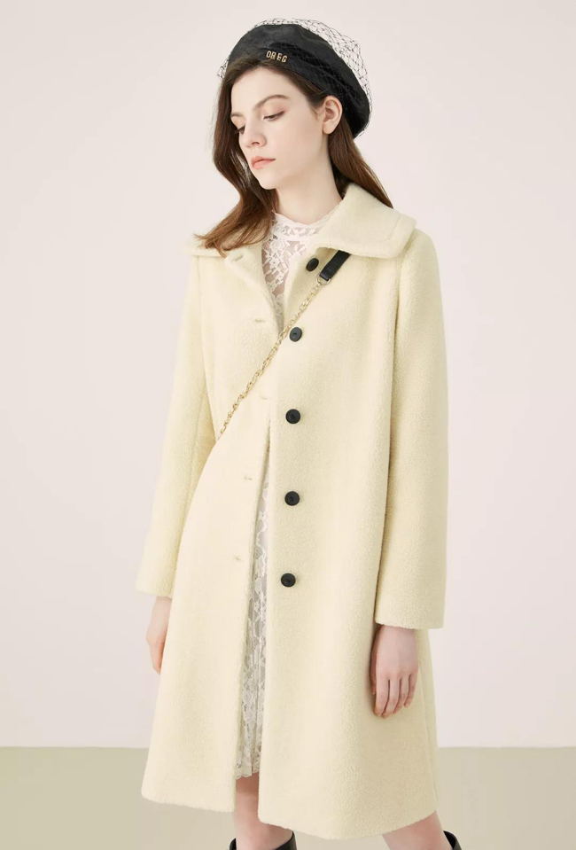 羊羔毛大衣+蕾丝裙=放大你的温柔属性