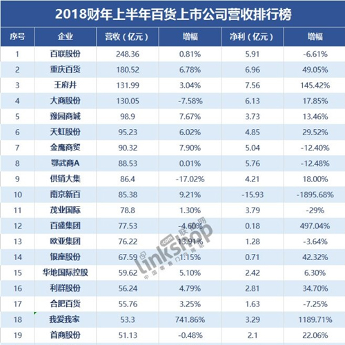 国内百货上半年营收排行榜出炉 “变形”才是出路?