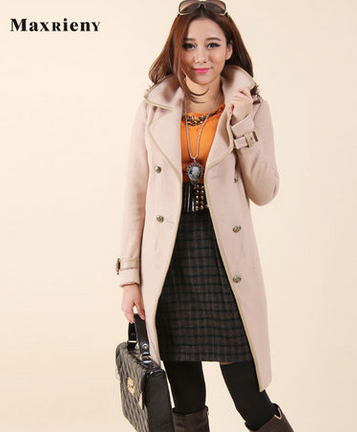 玛克茜妮冬装羊毛外套中长款翻领双排毛呢大衣