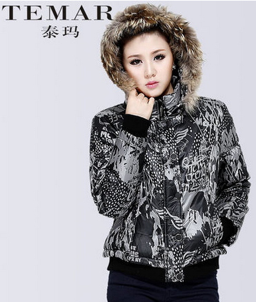 temar泰玛女装 2013冬装新品带帽狐狸毛棉衣外套