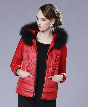 泰玛秋冬女装 貉子毛领 大码修身短款带帽 棉衣