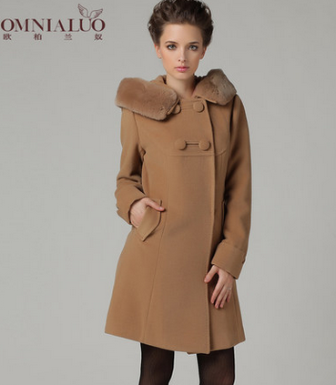 欧柏兰奴中长款收腰大翻领羊绒双面毛呢外套