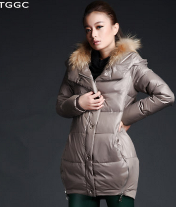 TGGC2013冬装可拆卸浣熊毛领品质女装白鸭绒羽绒服