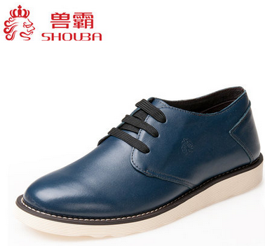 兽霸 2013新款男皮鞋 真皮系带休闲鞋 圆头保暖高
