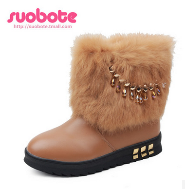 索波特童鞋新款儿童马丁靴男童真皮鞋女童雪地