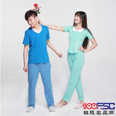 2014夏季新款情侣休闲睡衣超薄舒适男女短袖九分裤家居服套装