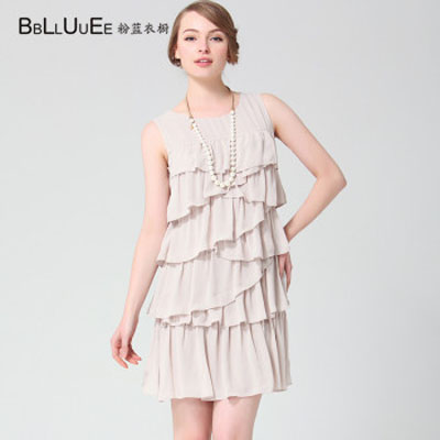 粉蓝衣橱专柜正品2014夏装新款女装OL高腰镶钻长裙连衣裙