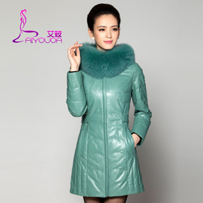 艾莜海宁皮衣2013新款真皮羽绒服女绵羊皮真皮皮衣中长款外套