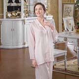 HOFO精品真丝女士新品桑蚕丝长袖家居服粉红色斜纹提花两件套