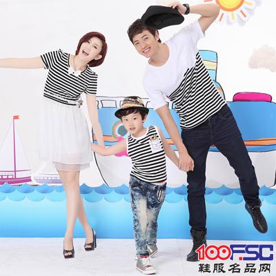 亲尚亲子装2014新款夏装连衣裙T恤条纹裙字三口装