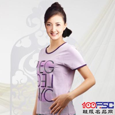 红天娇夏季家居服女莫代尔短袖圆领烫银印花单件上衣 睡衣