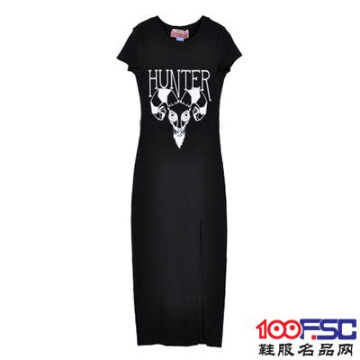 玩加 夏装新款纯色黑色显瘦连衣裙