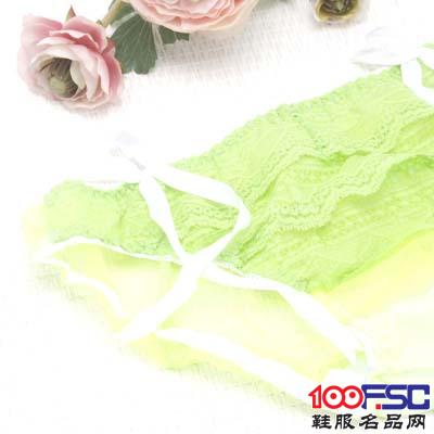 凯蒂妮情趣内裤嫩绿柔纱刺绣蕾丝蝴蝶结性感透视三角裤