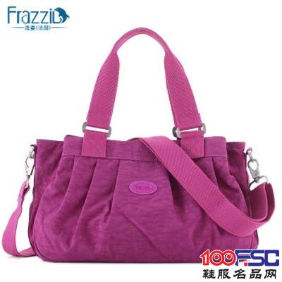 品牌特点: 采用特有的皱褶水洗尼龙布为主打材质,色彩清新自然,既薄又轻,坚韧耐磨,经过高科技技术处理的尼龙布,让Frazzil的包包具有超轻、柔软、防水、易于折叠、 不易褪色等特质,非常适合休闲旅行使用。