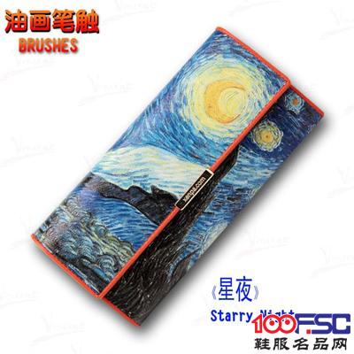 梵高星夜-油画牛皮钱包-油画笔触接近真迹-绝美艺术