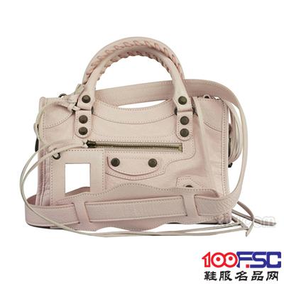 巴黎世家 女士粉色羊皮金属装饰手提包