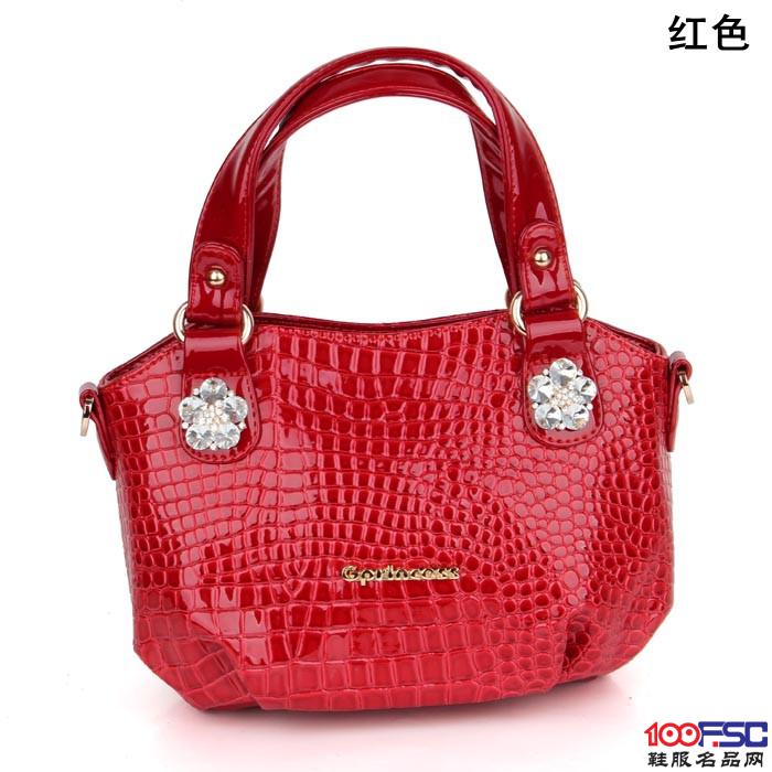 格尔王妃新款漆皮女包潮女士包包时尚亮皮鳄鱼纹手提斜跨包小包包