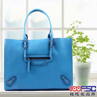 土琵琶质感手提包糖果蓝色笑脸手拎包时尚女包