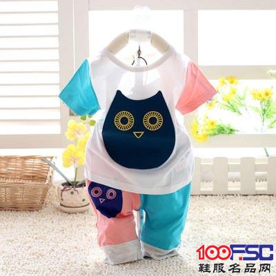 亲亲宝贝2014新款夏装爆款童装男女童纯棉猫头T恤套装个性两件套