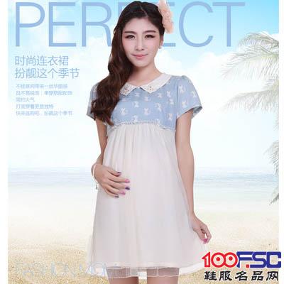 拼出完美2014孕妇装专柜正品夏 韩版牛仔拼接孕妇连衣裙