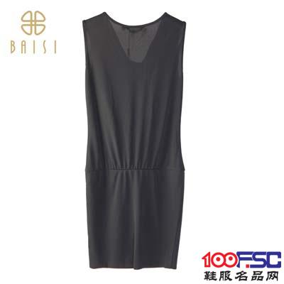 百丝2013夏女装无袖背心裙肩章修身连衣裙
