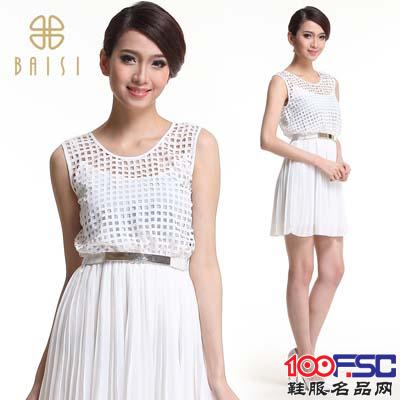 百丝 2014春装春夏新品镂空优雅雪纺连衣裙女裙长裙