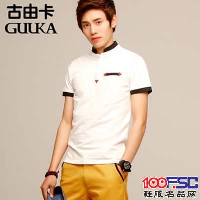 古由卡品牌男装2014夏季新款韩版潮流拼色翻领T恤