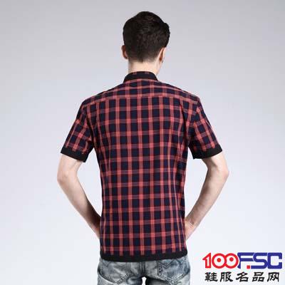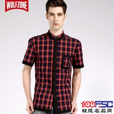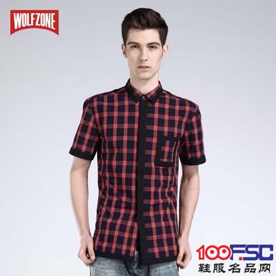 狼道正品wolfzone夏款新品流行格子男士纯棉短袖衬衫