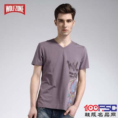 当前位置: 名品网- 样品- 狼道Wolfzone正品男装 百搭个性涂鸦休闲修身V领短袖T恤