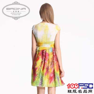 芭蒂娜2014夏装正品欧美大牌 高端印花修身雪纺连衣裙