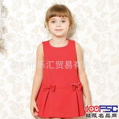 2014 muuzi kids童装秋季新款 韩版女童红色无袖连衣裙