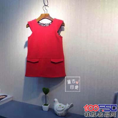 2014 muuzi kids童装秋季新款 韩版女童红色无袖连衣裙
