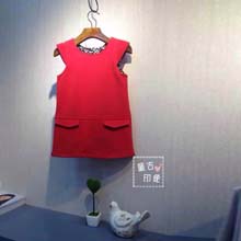 2014 muuzi kids童装秋季新款 韩版女童红色无袖连衣裙