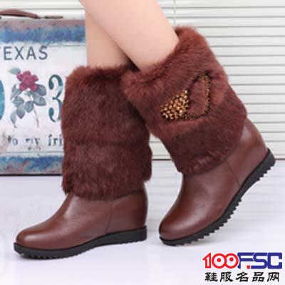 2014伊利贝纳冬季新款真皮女靴内增高兔毛窜珠欧美女靴时尚保暖雪地靴
