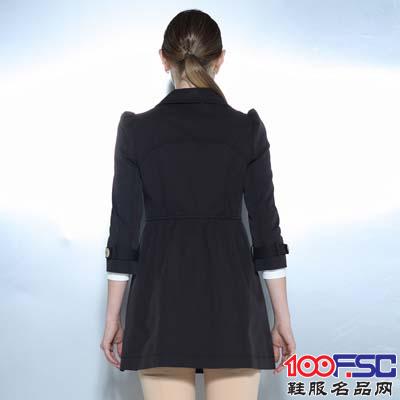 当前位置: 名品网- 样品- 菲阁2014春季新款收腰修身显瘦翻领九分袖女士中长款风衣外套