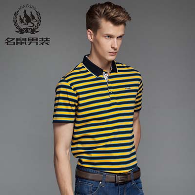 名鼠2014夏装新款男士短袖t POLO衫简约男条纹修身休闲棉T恤