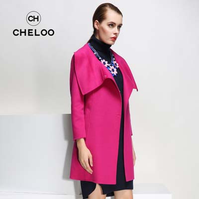 CHELOO品牌女装专柜正品秋冬新款羊毛呢子中长款大衣奢华羊绒外套